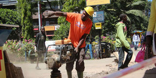 A Nairobi County employee repairing a section of the pavement on Aga Khan walk.