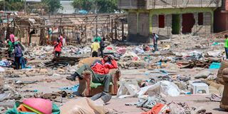 A man rests in the rubble of houses in Mariguini in South B, Nairobi, on January 13, 2026. The houses were demolished to pave the way for an Affordable Housing Project.