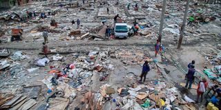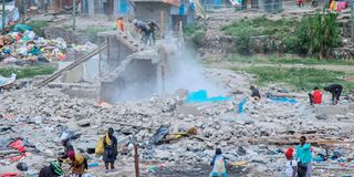 Residents of Mariguini in South B salvage household items from the rubble of their demolished homes on January 13, 2026.