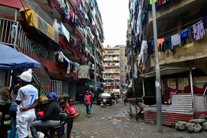The houses are squeezed so tightly that neighbours can shake hands from their windows. Sunlight barely touches the lower floors and children play in dim, garbage-strewn alleys.