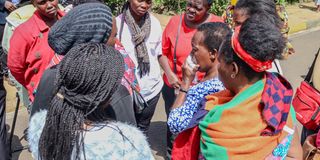 Family members of the late Masai converse after viewing his body at City Mortuary.