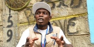 Youth leader, Samir Oloo during an interview with Nation in Kayole, Nairobi on September 4, 2020. Through his One Vibe community-based organisation Oloo leads an anti-crime campaign in the neighbourhood.