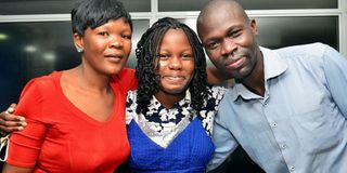Monicah Atieno Koko with her parents in Nairobi on November 6, 2020.