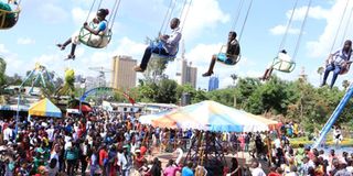 Children and their parents having fun at Lunar Park in Nairobi on Christmas Day in 2016.