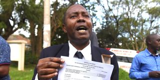Mr Simon Mwangi, one of the directors of the Nakuru War Memorial Hospital, displays a court order thwarting a forceful take over of the facility by the Nakuru county government on October 31, 2023.