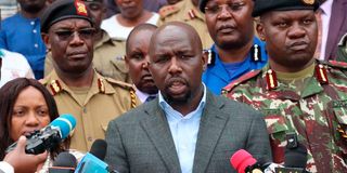 Interior CS Kipchumba Murkomen addresses the media in Nakuru on August 12, 2025.
