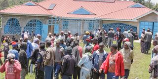 Residents at the homestead of the late Pius Machogu Nyantika, 72, and his wife, Jerusha Kwamboka Machogu, 70, at Taragonik village in Ndoswa Location in Mariashoni, Molo Sub-County on September 15, 2025.
