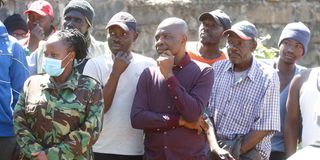 Shocked residents observe as Rosemary Wahu's body is removed from the house at Nakuru's YMCA Estate on March 6, 2024.