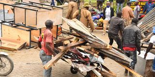 Traders salvage some of what remained after their businesses were demolished on October 11, 2020 in Nakuru.