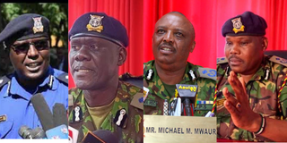 Former Nakuru County Police commanders( from left): Zachary Kimani, Samuel Ndanyi, Michael Mwaura and Peter Mwanzo.