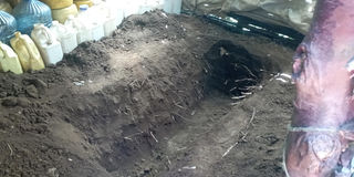 A grave dug inside the kitchen where the Form Three student intended to bury his mother's body in Nyakiambi Farm, Elburgon, Nakuru County on July 27, 2025.