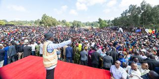 President William Ruto address residents of Rironi in Kiambu County, during the launch of the Rironi–Mau Summit Highway and the Rironi–Maai Mahiu–Naivasha road expansion.