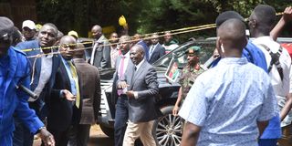 President William Ruto arrives at AIC Kapsabet Senior School for the Hearing Impaired in Nandi County, after a septic tank cover caved in while learners were standing on it, following the proceedings at a nearby road leading to Kapsabet Girls High School, where Ruto was expected to preside over a thanksgiving service on March 12, 2026. Eleven students were rescued and taken to hospital.