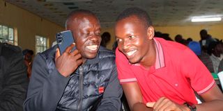 United Democratic Alliance (UDA) party candidates in the Emurua Dikirr Constituency nominations David Keter (left) and Kibet Rotich Farouk wait for the results to be announced at Emurua Dikirr Secondary School on March 27, 2026.