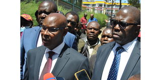 Former Narok North MP and Governor contestant in August 9 polls Mr Moitalel Ole Kenta (left) with his lawyer Prof Tom Ojienda (left) outside Narok High Court on November 7, 2022. Mr Kenta is has withdrawn a case challenging the victory of Governor Patrick Ntutu of UDA