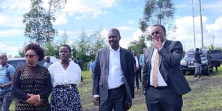Woman Representatives Beatrice Kemei (Kericho) and Cynthia Muge, Uasin Gishu Senator Jackson Mandago and President's Economic Advisor Dr Augustine Cheruiyot at Emurua Dikirr Technical Training Institute grounds, waiting for the bodies of area MP Johana Ngeno and four other chopper crash victims on March 5,2026.