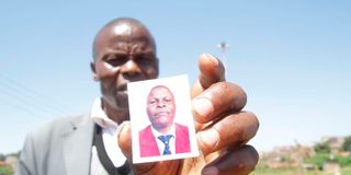 Reverend Francis Ngachu holds a photograph of his late brother Bishop Simon Ndegwa during an interview at Witemere slums in Nyeri town on July 10, 2025.