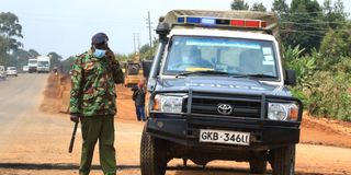 Anti-riot police in Giagachika along the Nyeri-Nairobi highway on July 23, 2021.