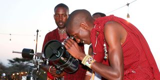 Samburu morans look through a telescope to view the skies at Sopa Lodges in Samburu County on September 7, 2025. CS Tourism Rebecca Miano launched astro-tourism in the country.