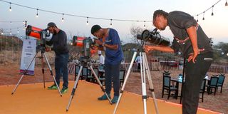 Astronomers look through telescopes to confirm if they are okay before being used to view ‘blood moon’ at Sopa Lodges in Samburu County on September 7, 2025.