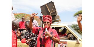 Taveta MP Dr Naomi Shaban at a campaign rally in Timbila area in Mahoo ward where a byelection will be held on Thursday.