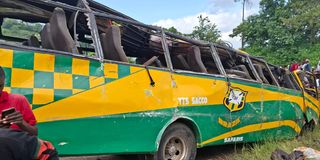 A bus involved in an accident along the Wundanyi-Mwatate road in Taita Taveta.
