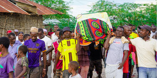 Residents of Kilindini village in Tana River County carry the remains of Ali Salim, 20, to his burial site in this picture taken on December 14, 2025.