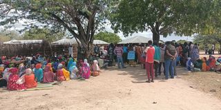 Villagers gathered at the Chamwanamuma village square in Tana Delta amid tension over land in Tana River County in this picture taken on September 2, 2025.