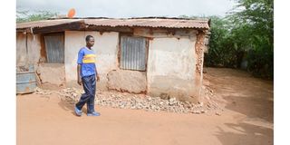 Victor Imbalia, once a successful farmer at the Bura Irrigation Scheme takes a walk around his house in Bura, Tana River County..