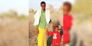 Reunion: Ayub Ahmed, 4, with his father Abdi Salat in Gerasa Village, Tana River County. He was rescued after wandering in the Tsavo wilderness for almost a week.