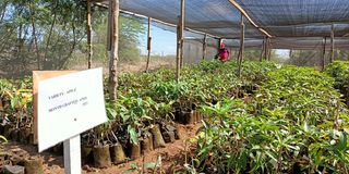 Some of the grafted Apple mangoes tree seedlings at the nursery bed in Hola,Tana River County.