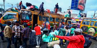 A hive of activity at Machakos Country Bus Station on December 21, 2025, as travellers scramble for transport to various upcountry destinations, with demand exceeding supply, limited vehicles on the road, and bus fares to some routes doubling amid the Christmas travel rush.