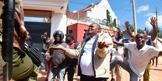 Riot-police at the entrance of Trans Nzoia County Governor George Natembeya's home in Kitale on May 19, 2025.