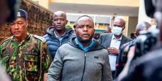 Trans Nzoia County Governor George Natembeya arrives at the Milimani Anti-Corruption Courts on May 20, 2025, where he was arraigned and charged with corruption.