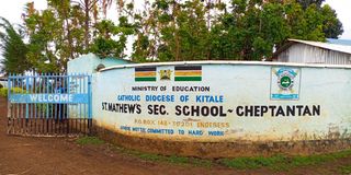 St Mathews Cheptantan Secondary School signpost. The school in Endebess constituency, Trans Nzoia County had a mean score of 2.88 in the 2021 KCSE exams.