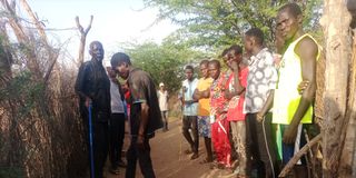 Nakwamoru villagers at the scene where Mr Erionga Emase was shot dead by bandits on his way back from hospital on Tuesday.