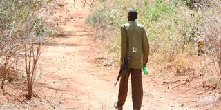 A National Police Reservist patrols Sinoni area in Mochongoi, Baringo County on February 16, 2023.