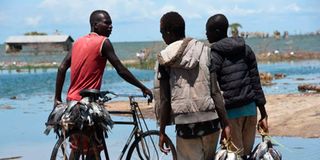 Fishermen with their catch at Kalokol area of Lake Turkana.