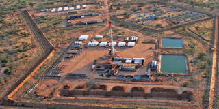 An aerial view of a Tullow oil rig in Turkana County. Frustrated residents who have promised to block any oil from leaving the region unless the government allocates them a higher percentage of its revenue. PHOTO | FILE | NATION MEDIA GROUP