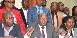 University Academic Staff Union's National Secretary-General Constantine Wasonga (centre) and other Moi University officials at a past event.