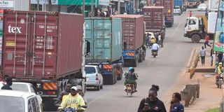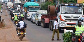 Long-distance trucks in a traffic jam in Eldoret City, Uasin Gishu County on September 15, 2025.