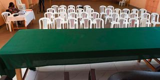 A holding room for witnesses for the Independent Investigative Committee on Organ Transplant Services, at the Eldoret Social Hall in Uasin Gishu County, on the second day of a four-day investigation on June 10, 2025.