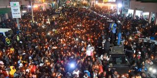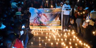 Artists and other members of the public during candlelighting in the streets of Eldoret, in honour of the late Emurua Dikirr MP Johana Ng'eno.