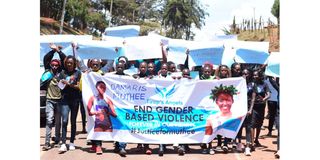 Athletes holding a procession in Iten, Elgeyo Marakwet County on April 25, 2022 to protest the killing of Damaris Muthee Mutua, a Kenyan-born Bahraini athlete who was found killed in Iten last week. Two-time World 10,000m Bronze Medalist Agnes Tirop was also killed last year.