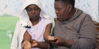 Elizabeth Kerubo, 19, a kidney patient, with her aunt, Ruth Moraa, during the interview on Eastleigh Estate in Elburgon, Nakuru County.