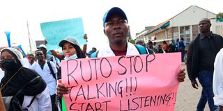 Kenya Medical Practitioners, Pharmacists and Dentists Union members participating in a demonstration in Nairobi.