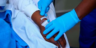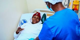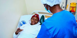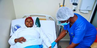 Ngwenya Fihliwe Happiness, a woman who got a rare type of cancer called Choriocarcinoma, is treated in an examination room at MP SHAH Cancer Centre, Nairobi on August 27, 2025.