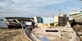 Old ragged marine vessels dumped on the shores of Wiyoni Beach in Lamu Island.