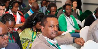Dr Million Belay (centre), the general coordinator of the Alliance for Food Sovereignty in Africa, among other delegates following proceedings at the second Africa Climate Summit in Addis Ababa, Ethiopia on September 9, 2025.
