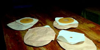 Stoma bags that Rose Atieno’s baby uses to collect stool.